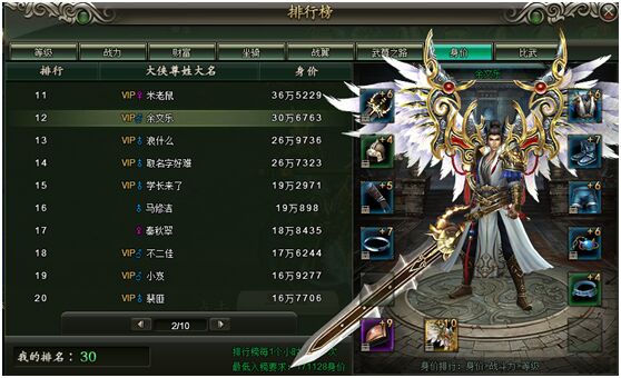 等级,战力,财富,坐骑,战翼,身价,比武,武尊之路。八大排行,最能体现你的战力,能力,财力的时候到了~~~