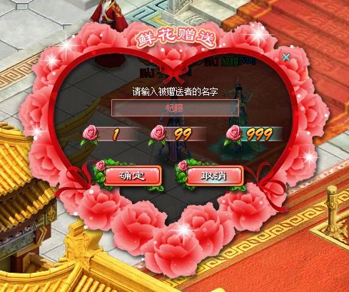 赠送鲜花的数量分为1朵,99朵,999朵,赠送一朵玫瑰增加好友度6点。