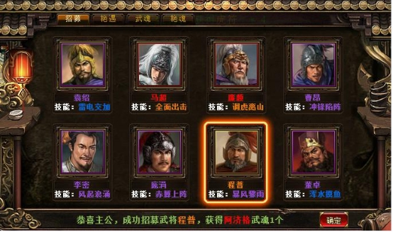 猛将不喜欢吝啬的主公,出手豪放一点也能获得更好的武将。,一旦这些武将决定跟随您,他就会为您披甲杀敌。