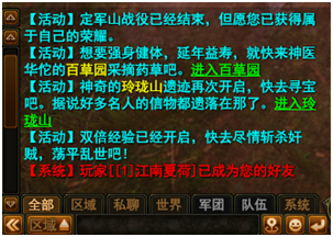 - 在游戏主界面的左下方记录了所有屏道的聊天情况