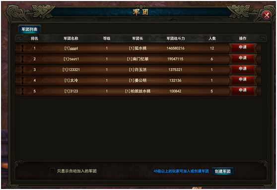 - 可查询军团申请列表