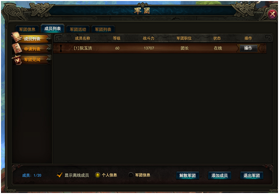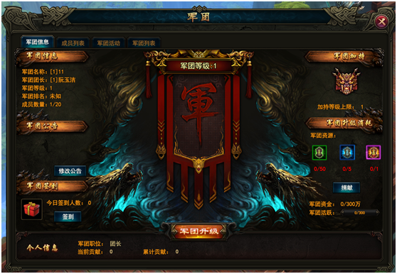 - 军团信息标签页中