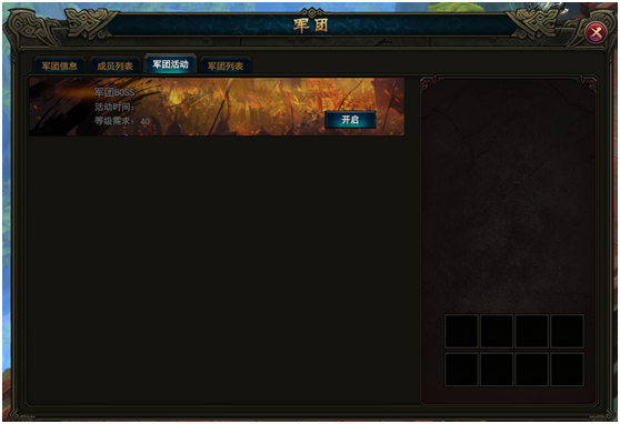 - 团长可开启指定的军团活动,自己的军团成员都可以参加。