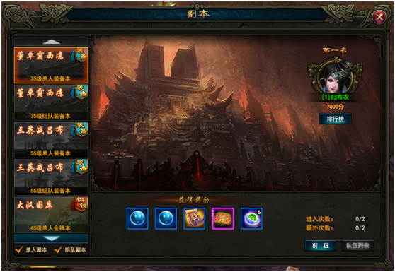 - 点击主界面右上方的“副本”按钮后会进入以下界面