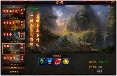 - 领了龙山活动开启后,玩家可选择玲珑山活动标签页点击参加进入活动地图。