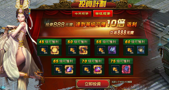 1:投资总览中会显示两个投资套餐相关信息:投资消耗,条件返利