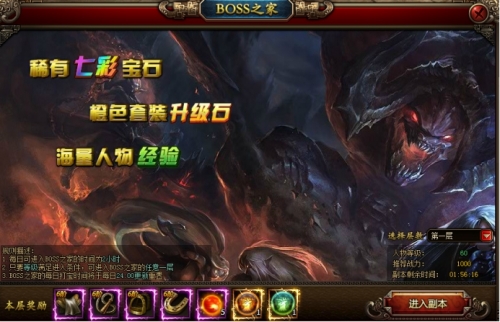 5.每层BOSS之家掉落的道具各有不同,层级越高,越有可能掉落更好的道具。玩家可在活动面板—BOSS掉落处查询每层可获得的奖励。