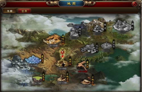 2.选择一个大地图上的地图后,可以看到该地图的详细信息,同时还有徒步前往和元宝传送2种移动方式。