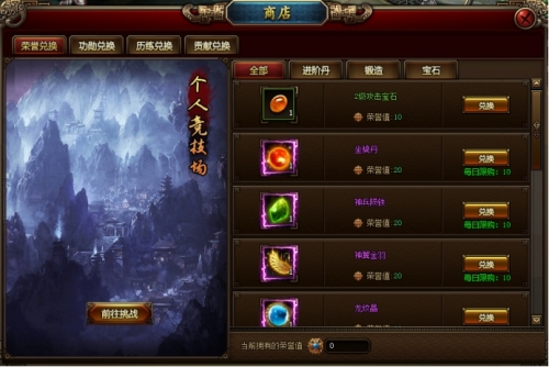 玩家可通过指定活动获得“荣誉值”、“功勋值”、“历练值”、“贡献值”