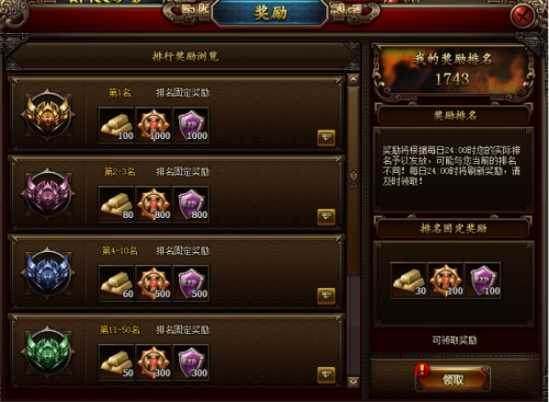3.0点是刷新次数和领取排名奖励