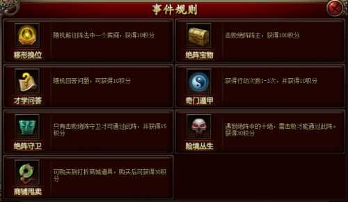 1.玩家从阵法入口开始闯关,到达出口即完成此次挑战。