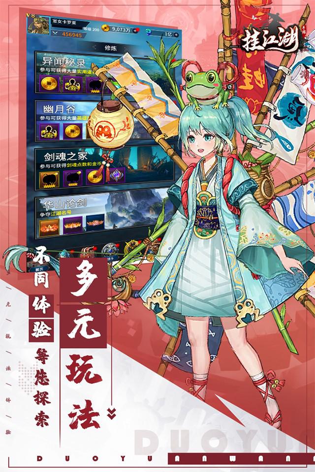 《挂江湖》是一款唯武独尊的江湖武侠题材的放置卡牌养成类RPG手游。上线直送VIP*12、勾玉*68888,金币*500万、开局称号、2022充值卡。更有百位武侠侠客策略多多,搭配出属于您特有的江湖阵容,跨服战场、武林争霸等您放置封神!