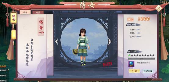 二、侍女的培养:打开侍女界面可对侍女进行培养
