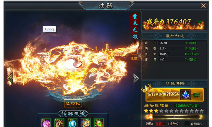 而且法器还能提升等阶,最高十阶,每进阶一次都能获得更强大的战斗属性以及炫目的外观。