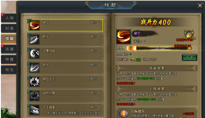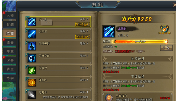 当技能等级达到一定要求时,我们还可激活技能大师,更进一步加强我们的战斗力!