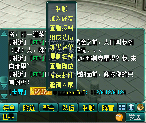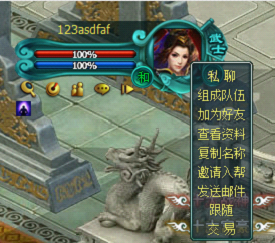 在“好友列表”中,左键选中一名好友,可以进行私聊、删除、组队等一些操作。