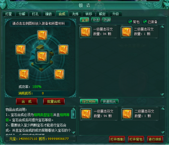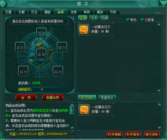 3、若放入的符文存在绑定状态,则合成后的符文为绑定状态。