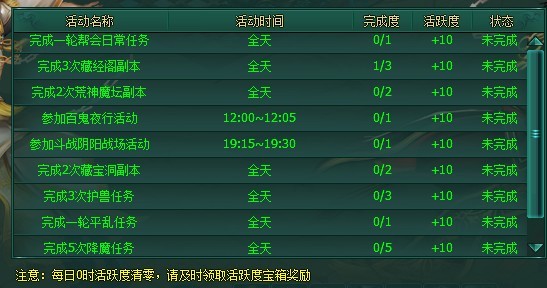 另外,每个天你做完上述的副本、任务、活动以后都会获得活跃度,活跃度到30、50、70、90都可以换东西的,活动度90的时候可以换到2W非绑定钱币哦。