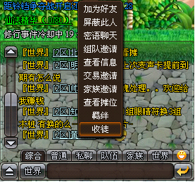 3.您也可以在聊天窗口中选择可以成为徒弟的玩家,左键单机该玩家名字后,可以选择拜师选项(若对方不满足徒弟条件,将没有收徒选项),发送收徒请求;
