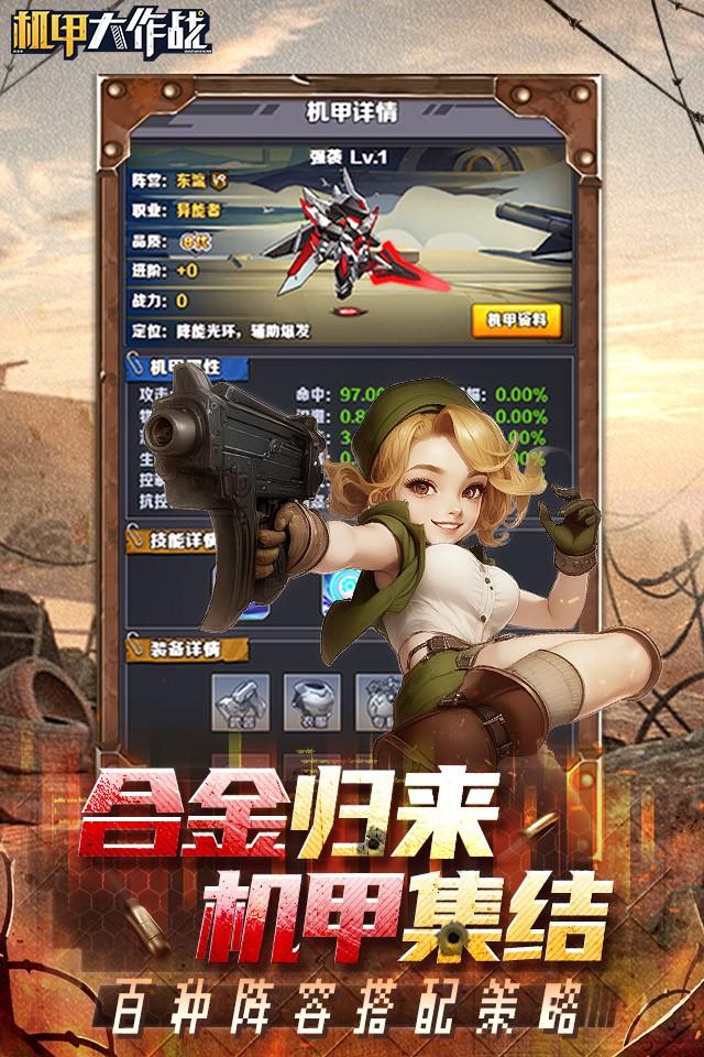 《机甲大作战》是一款机甲题材卡牌放置游戏,你将操纵末日战车,组建强大的机甲战队,收集稀有能源并精心打造装备,以迎接外星入侵的挑战。在神秘多变的太空遗迹场景中,你将与好友并肩作战,守护地球未来的命运。