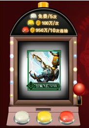 红色按钮:花费950w金币连续抽10次,可以获得海量初级英魂石,必得绿色佣兵卡*1