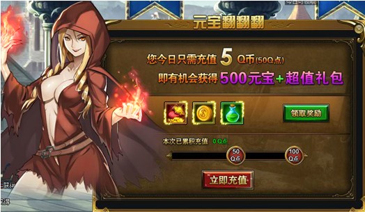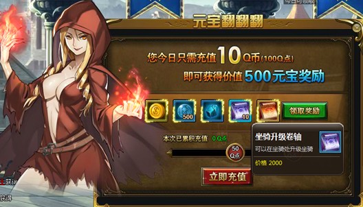 ③.每天只需充值10Q币(100Q点)即可在②的基础上额外获得100w金币、中级英魂石*500、灵魂石*1、坐骑升级卷轴*10以及坐骑升阶卷轴*1.