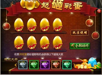 ①.上方一共8颗彩蛋,每颗需要花费20元宝砸碎;