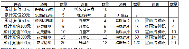 礼包周期:2018年10月23日更新后-10月29日23:59