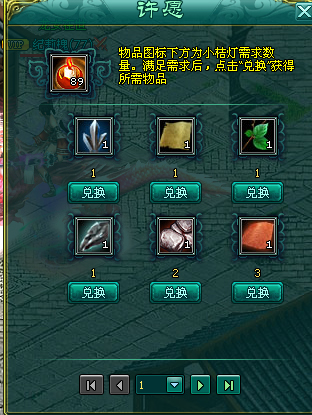 玩家可以通过许愿井进行许愿,许愿需要消耗玩家在平时历险中获取的小橘灯,许愿井中有各类道具,小到药品,大到奇珍异宝,都可以在许愿井中出现。