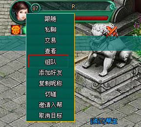玩家点击真气栏傍边的组队按钮,可以开启组队面板