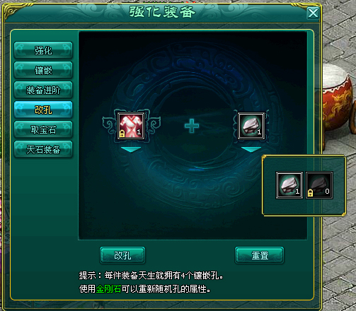 每件装备都有自身所属的镶嵌宝石空,若玩家不喜欢自己装备上的空,可以进行改空操作: