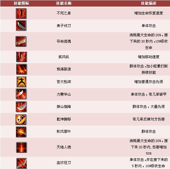 血刀以快和刚猛著称,主要讲究先伤己再伤敌,属于爆发力猛攻型门派。