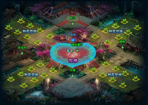 1.4 种花1. 仙侣2人组队,可以前往情缘仙境的情花童子领取种子。