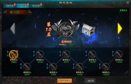 每个宝地每页可以看到有十个关卡,挑战满十关可以获得一个宝箱。然后可以继续挑战下一个十关