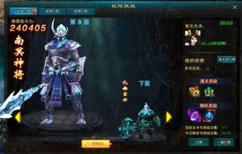 点击“极限挑战”按钮可打开副本界面玩家可按照对应的等级和战力选择对应难度的关卡