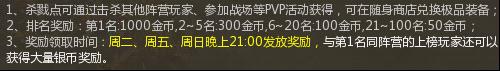 玩惊天战神怎可以错战场呢? 战神的存在,杀戮那是必须的。20点的战场,进入战场以后,先不要急着冲出去,你的身边有一个NPC哦,点击他,你可以接到3个任务,这三个任务都是奖励 杀戮和金币的哦,而且可以完成两次呢。由于有了NO1 ,3,4的积累,你的战力会超过同样一起进来的小R和平民哦,开始你的杀戮,只要你不和大R们死磕,胜利会属于你,找人多的地方,多杀人,多混点杀戮点 吧。
