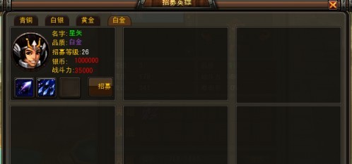 点击招募英雄进入招募页面。英雄的招募是有前提条件的,钱是必须的一个方面,其次就是对战斗力的要求,战斗力越高才能招募到越高级的英雄。