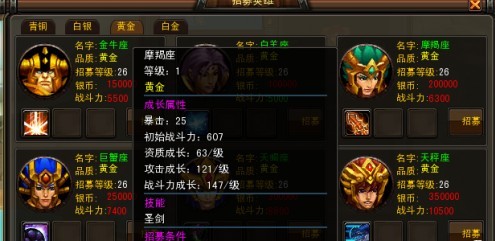 惊天战神十二黄金圣斗士已经星矢都在被招募的列表中,下面为大家介绍如果招募这些英雄。