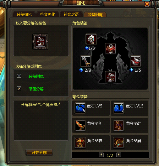 3、玩家可以从副本通关翻牌奖励,或者分解有附加属性的装备获得魔石。