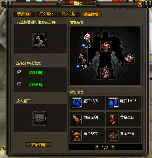 1、装备附魔需消耗魔石,随着装备等级的提升,消耗的魔石等级也随之提升。