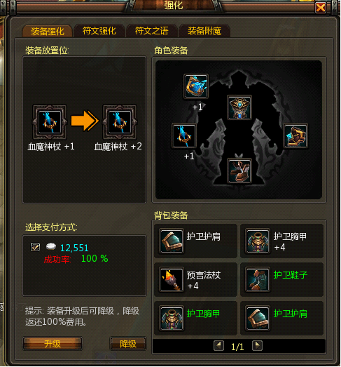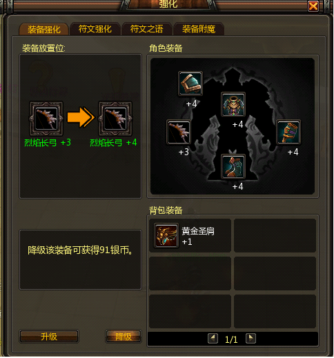 1、所有已强化装备均可进行降级,强化装备降级后系统均100%返回消耗银币;
