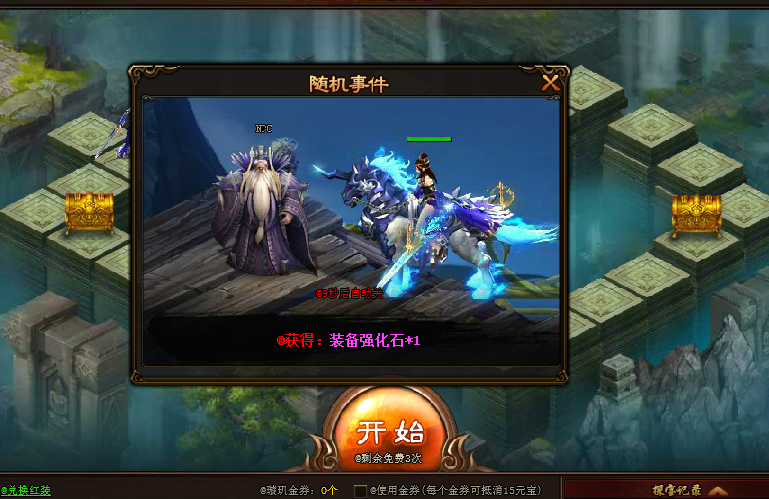 3)行进过程中,可获路途上的小宝箱,宝箱中可能掉落”璇玑金券“或”传说装备秘卷“等奖励;