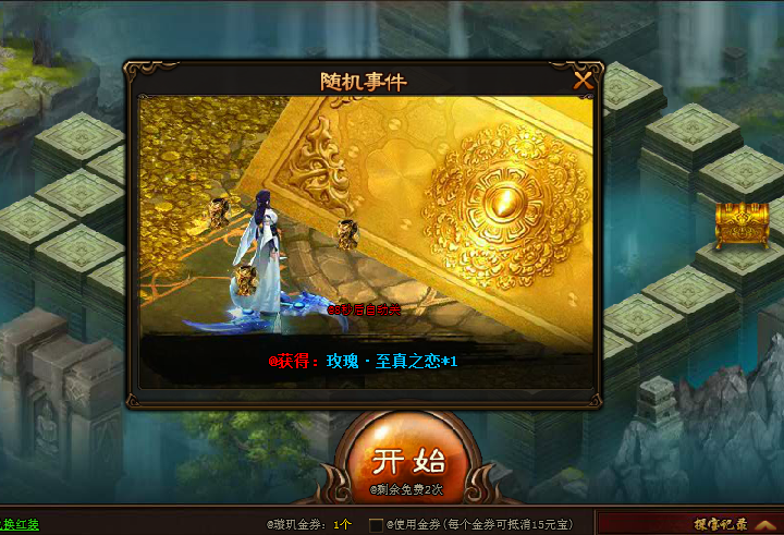 5)当3次免费掷点使用完,需要消耗元宝才能继续前行;此时可以小宝箱获得的”璇玑金券“,每1张均可抵扣15元宝,帮助侠士继续前行。