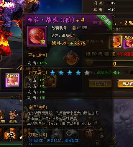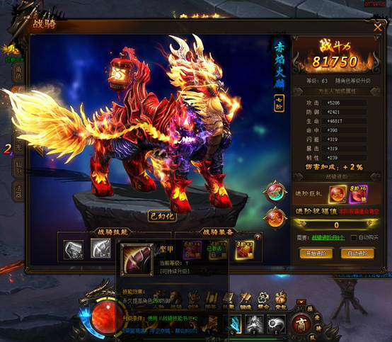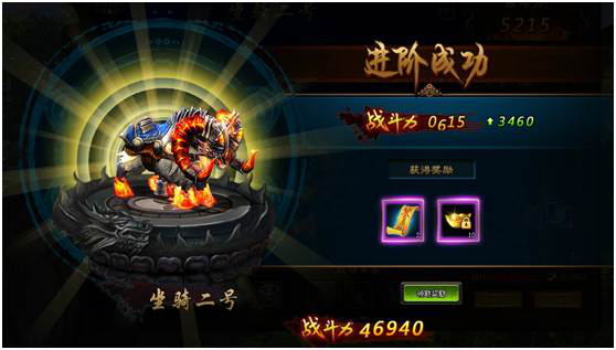 (3)战骑进阶成功后,将获得更炫更酷的外型和更加强大的属性;