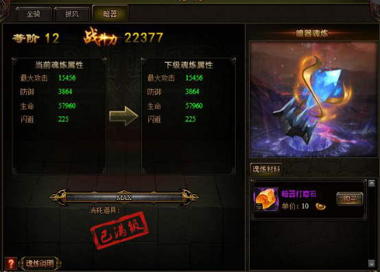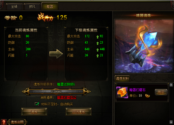 3. 暗器魂炼系统最高进阶等级等于当前暗器系统等级
