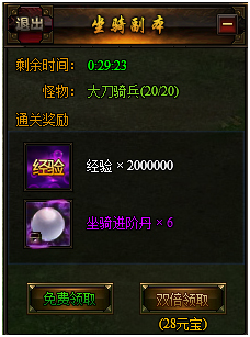 副本通关后还可以花费极少量的元宝来领取双倍奖励。