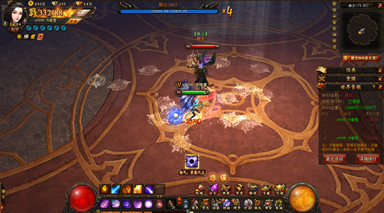 活动内容:活动开启后,野外首领将出现在龙门荒漠、南林树界、十万毒沼、百兵军墓、流焰凶牢以及光明顶,,击倒它们可获得高级装备与宝石掉落。对首领造成伤害者将根据伤害总量排名获取奖励。