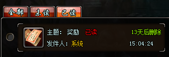 已经读过的邮件或者未读的邮件会自动分类,提醒一点哦,邮件到期系统会自动删除,记得定时查看您的邮件和提取辛辛苦苦得到的奖励哦~
