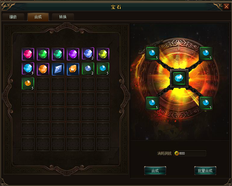 如果想拥有高级的宝石,可通过宝石合成获得,4个低阶宝石可合成一个高阶宝石。当然越高阶的宝石合成,消耗的铜钱越多哦