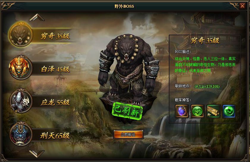 这些野外BOSS稀少罕见,能力较强!玩家最好能结伴而行;